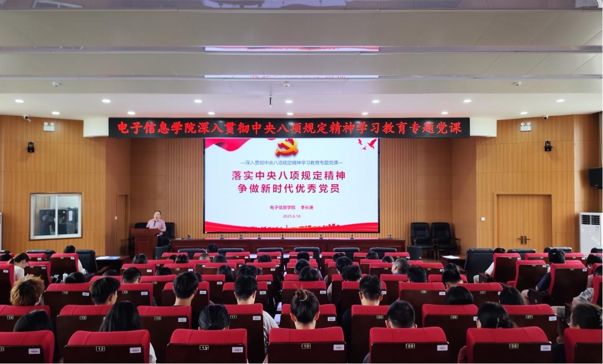 6月18日,yl6776永利集团在601报告厅组织深入贯彻中央八项规定精神学习教育专题党课。学院党委李长庚书记围绕《落实中央八项规定精神,争做新时代优秀党员》的主题进行了宣讲,160余名学生党员参加。