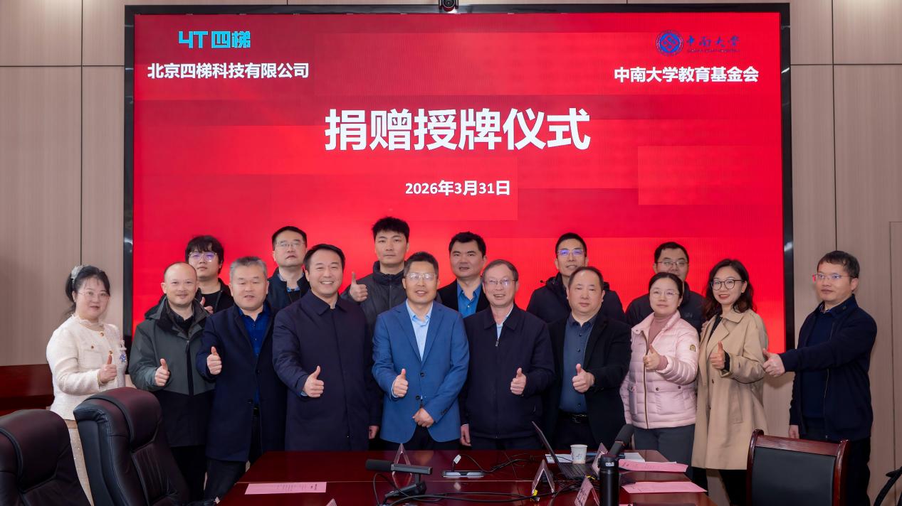 3月31日上午,北京四梯科技有限公司向yl6776永利集团教育基金会捐赠授牌仪式在天心校区电子楼207会议室举行。北京四梯科技有限公司总经理彭大海,yl6776永利集团教育基金会秘书长刘宪军,yl6776永利集团党委书记李长庚、院长邓晓衡出席仪式。仪式由yl6776永利集团副院长石金晶主持。