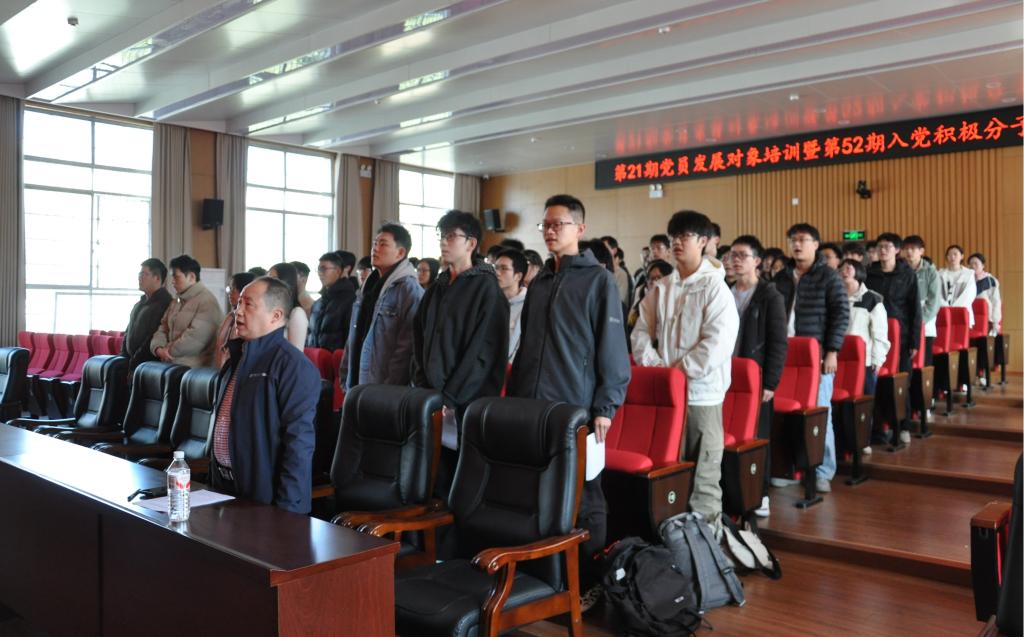 马扬程同学代表入党积极分子发言。他号召全体学员,以培训结业为新起点,在学习科研中主动亮明身份、发挥先锋模范作用,扎实锤炼专业技能,努力成长为政治合格、本领过硬的共产党员后备力量,为实现中华民族伟大复兴的中国梦贡献青春智慧。