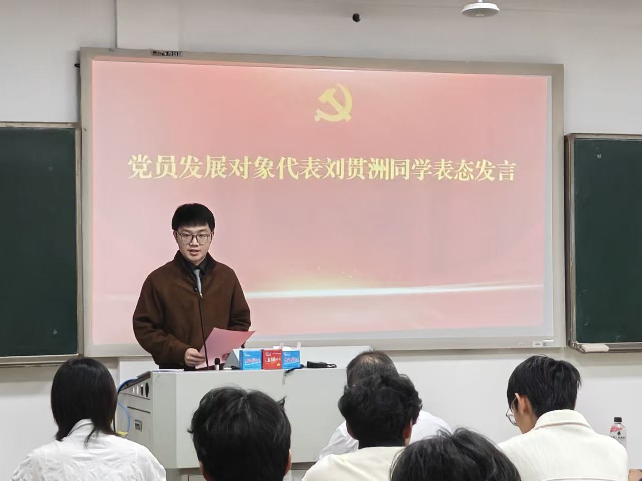 党员发展对象代表、2024级电子信息专业研究生刘贯洲同学在分享感悟时表示,要时刻牢记“国之大者”,深入钻研关键核心技术,把论文写在祖国大地上,以实际行动践行“请党放心,强国有我”的青春誓言。